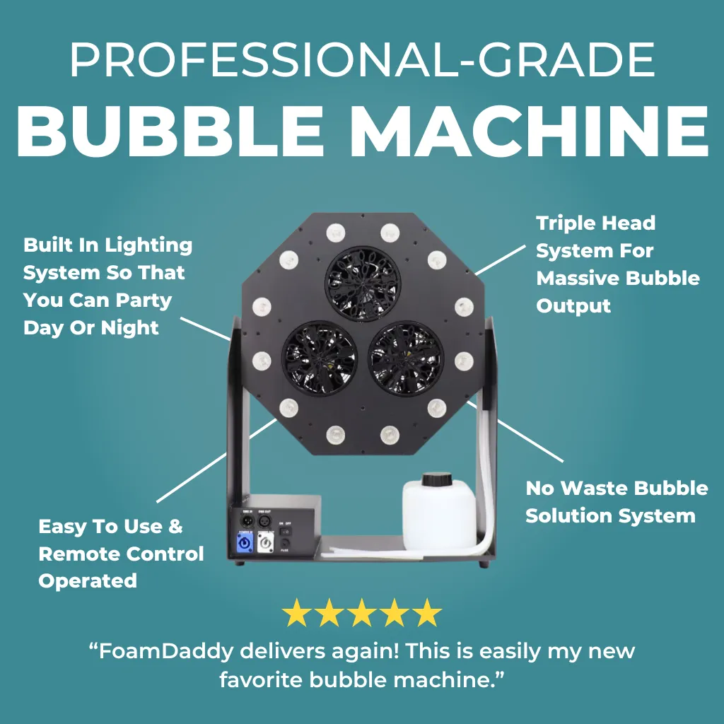 The FoamDaddy Bubble Machine is a professional-quality bubble machine designed to produce massive amounts of bubbles for any bubble party event.