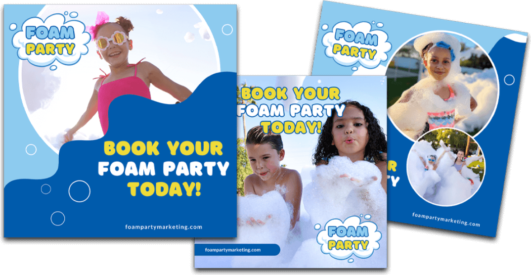 High-Converting Facebook Ad Templates designed specifically for foam party businesses by industry professionals. These ads have helped hundreds of foam party businesses book more gigs consistently!
